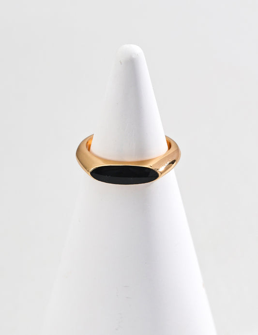 Bague Émail Noir en Argent Massif Doré Or Fin 18K - Lya