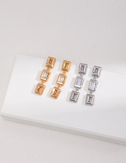 Boucles d'Oreilles Chic Géométriques Zircon Argent Massif - Alanis