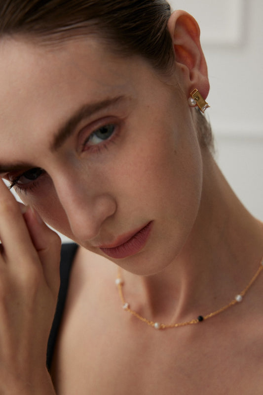 Bracelet délicat en perles d'eau douce et chaîne dorée - Maïté