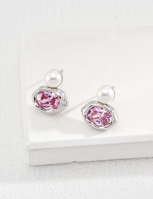 Boucles d'oreilles Chic Perle et Zircon en Argent Massif - Monique