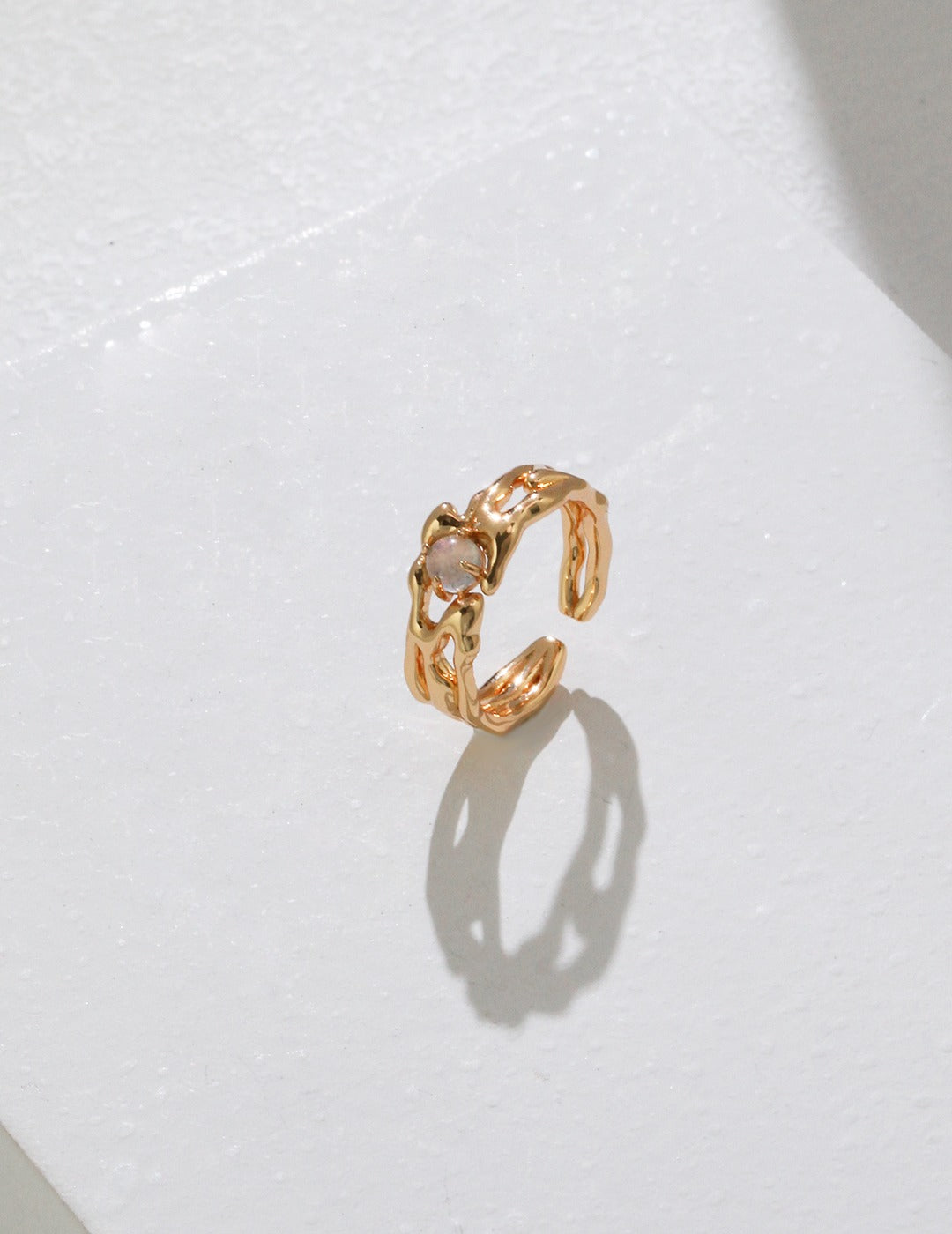 Cette bague ajourée répondant aux tendances actuelles donnera un plus à votre allure ainsi qu'un gain de confiance en vous grâce à cette pierre labradorite qui élimine les énergies négatives.